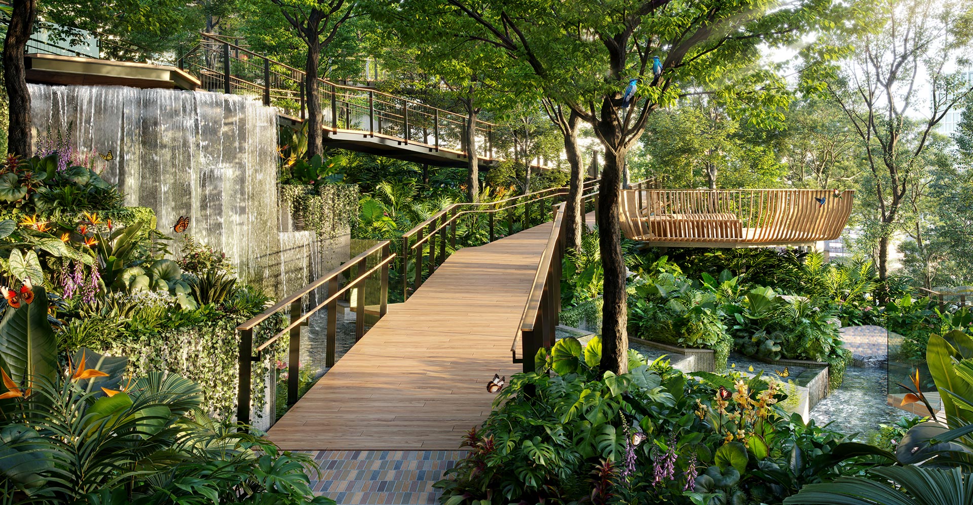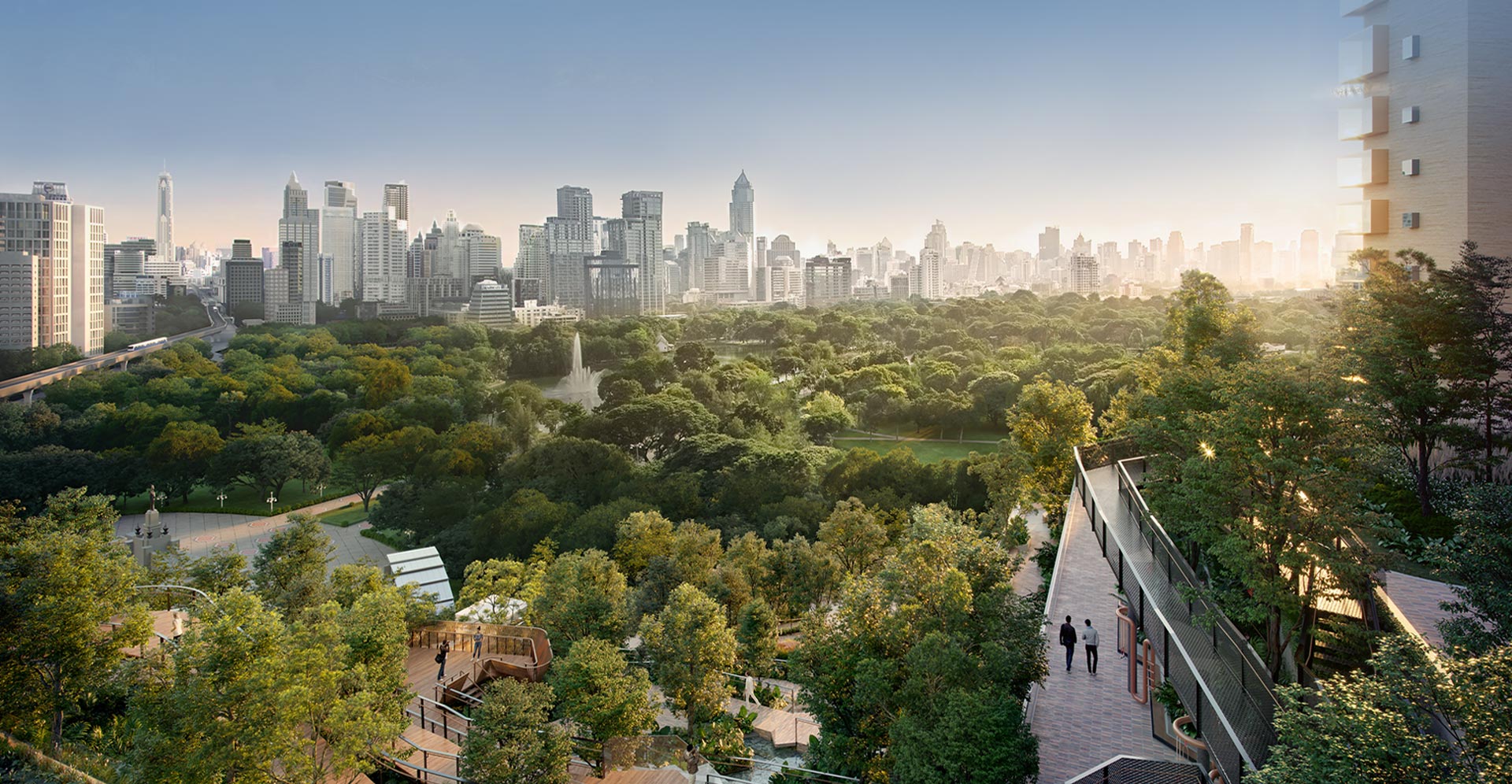 Step into a world where the excitement of city life exists in perfect unison with the serenity of nature. Designed as an extension of Bangkok’s lush Lumpini Park, Suan Dusit Arun at Dusit Central Park blurs the boundaries between indoor and outdoor spaces to form the lush ‘green lungs’ of Dusit Central Park. This elevated 7-rai (11,200 sq.m.) Suan Dusit Arun features leafy tropical gardens, refreshing waterfalls and shady recreational areas that bring the rejuvenating qualities of nature together with expertly curated outdoor lifestyle experiences.